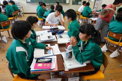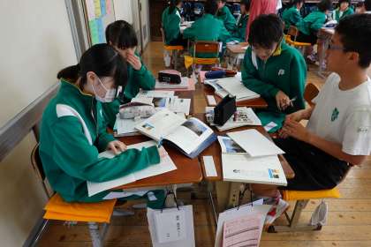 グループで、「記述と「過去を照明する証拠」の違いを説明しよう」という課題について検討しています。