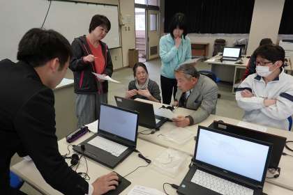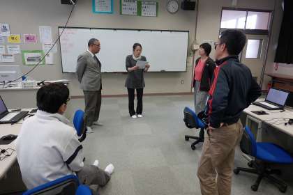 今年は、初めて英語「話すこと調査」があるため、生徒の下校後に、パソコン室で先生方が準備をしました。