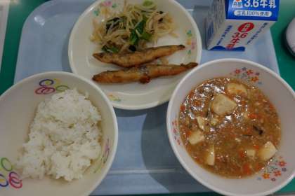 給食では、麻婆豆腐とシシャモは定番の組み合わせです。