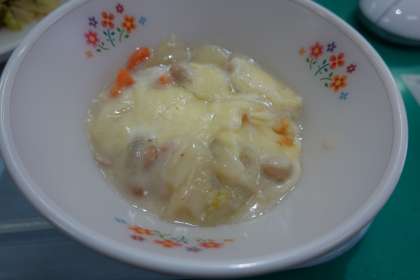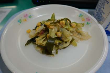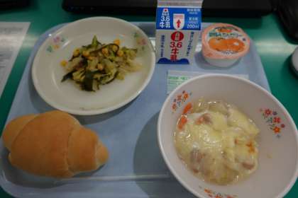 食パン、牛乳、チキンポテトグラタン、海藻サラダ、みかんゼリー