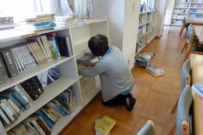 今日は、学校司書さんが掃除と整備をしてくださっています。