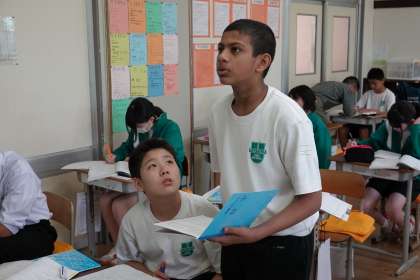 先生に教えて頂いたり、友達同士で確かめあったりしています。