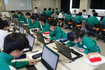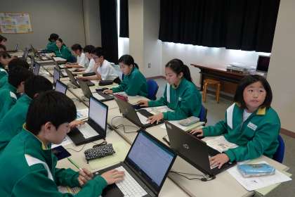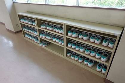 パソコン室前の廊下の靴箱に、上履きもきちんと入れてあります。