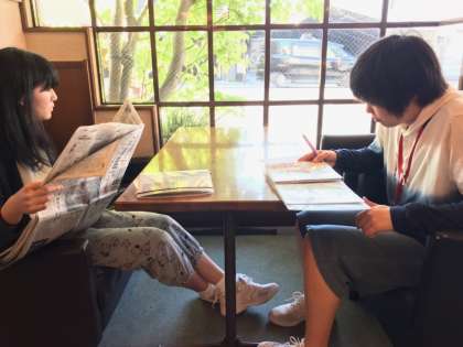 食事までの間、振り返りを書いたり、今朝の新聞を読んでいます。