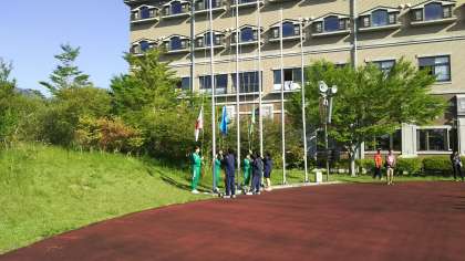 挨拶を交わし、今日の抱負を発表しました。熱海中ともレクリエーションで交流しました。