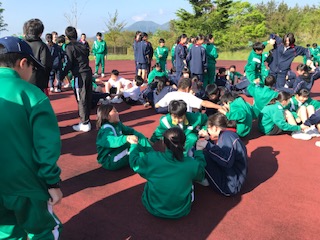 今朝も快晴です。熱海中の生徒さんたちとレクを楽しみました。