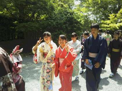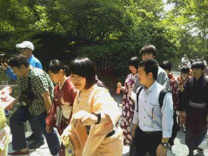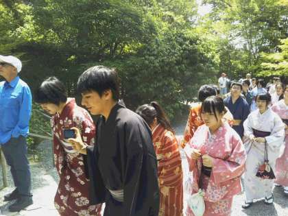 石庭へ向かいます。木々の緑が美しく、日陰は涼しいです。