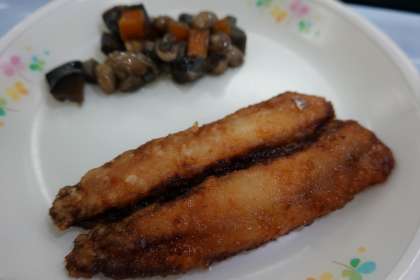 今日は蒲焼きです。味噌汁もタマネギの甘みが感じられました。