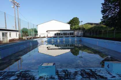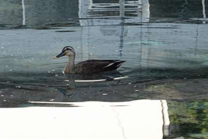 今日のプール掃除の前に、かるがも?が ”すーいすーい〜”