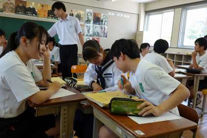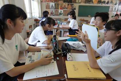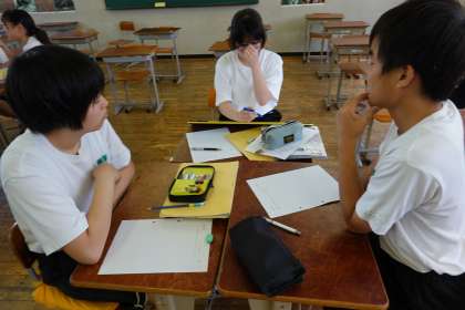 最後の単元「現代の日本と世界」の課題を班で相談してつくります。