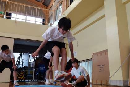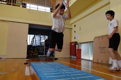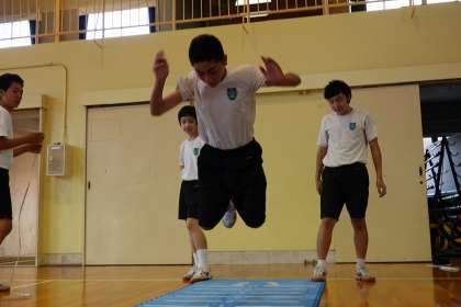 男子は立ち幅跳びをやっています。