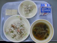 麻婆豆腐にシシャモ(正式にはカラフトシシャモ)とは、給食では定番の組み合わせです。茎わかめの食感がとてもよかったです。
