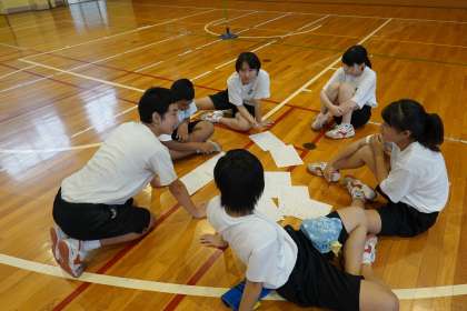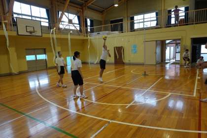 バレーボールのゲームをして、チームの課題や特徴をとらえていきます。