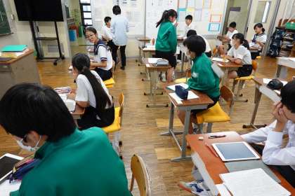 テストの振り返りの後、短歌づくりをしています。