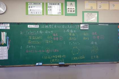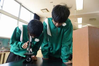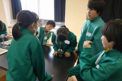 再結晶して出てきた部室は食塩なのかを顕微鏡で観察しています。