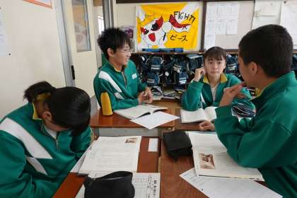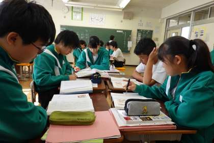 グループで音読をしています。