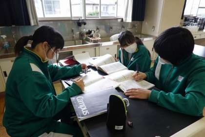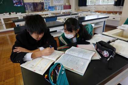 テストに向けて、教え合っています。