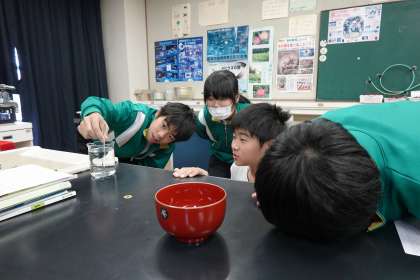 光の屈折によって、お椀の底の5円玉が・・・。
