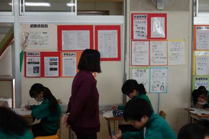 先生が見守っています。