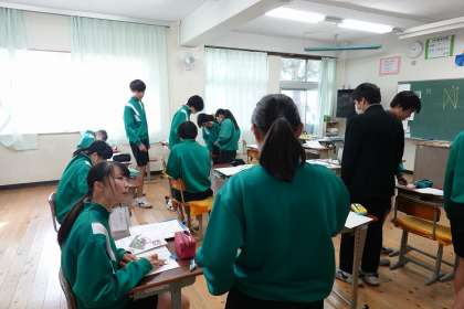 それぞれがどんな図が書けたのか、友達の図を見ています。