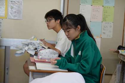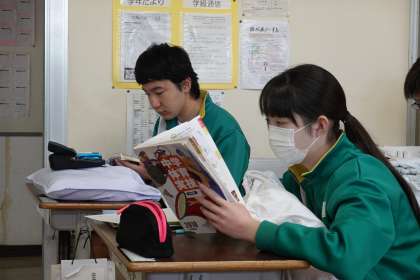 教科書をしっかりと見ています。