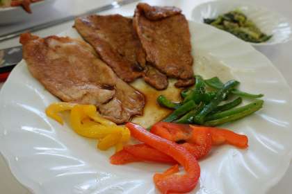 野菜の付け合わせ、ごま和えもおいしそうでした。