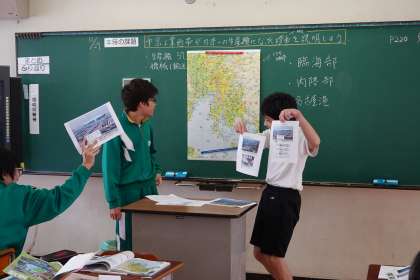 写真や地図を示しながら、説明をします。