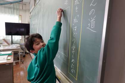道の絵を黒板にかいていました。
