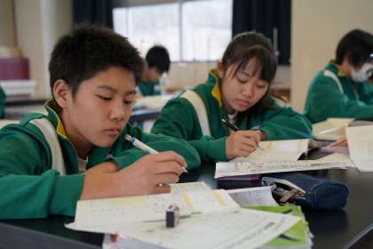 プリントやワークでまとめをしています。