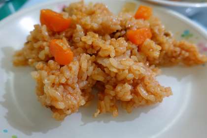 今日はチキンライスです。トマトのうまみいっぱいです。シシャモも大きい!