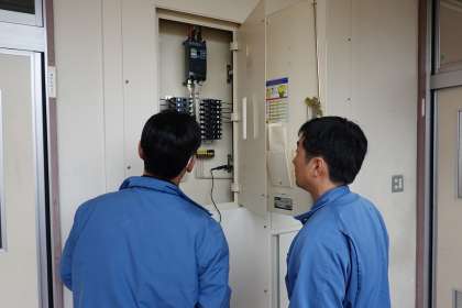 教育委員会に修理を依頼し、業者の方にみていただいています。