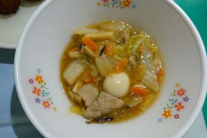 今日は、野菜、食物繊維が多いメニューです。八宝菜をご飯にのせて食べるのもよかったです。