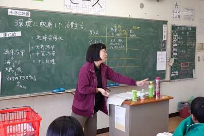 環境に配慮した消費生活について学習しています。