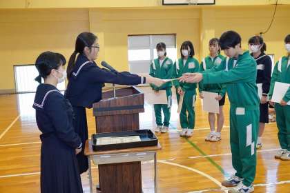 生徒集会 百人一首大会の表彰