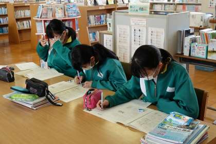 図書室で学習中