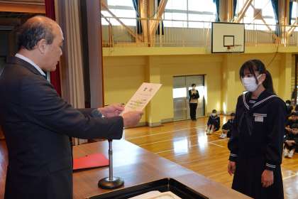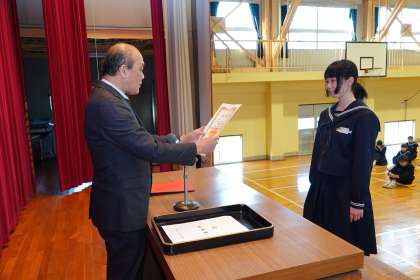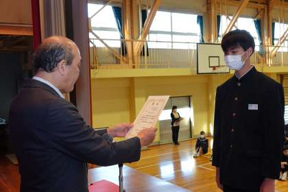 受賞生徒、代表生徒に、賞状を授与しました。