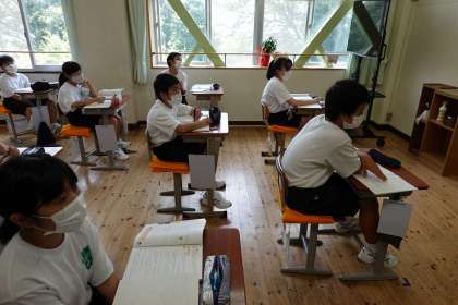 指名された生徒が黒板に、自分の答えを書いています。
