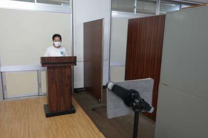 感染リスクを減らすため、全校で集まらず、zoomを使って実施します。