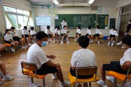 子どもののための哲学 P4Cという手法を使って生徒同士が「学校にスマホを持ってきてはいけない。」をテーマに話し合います。