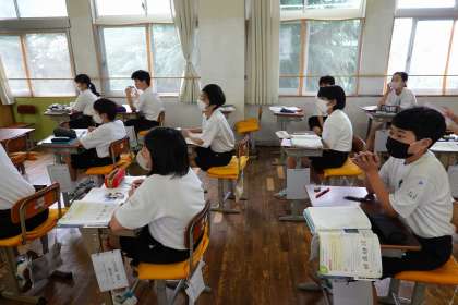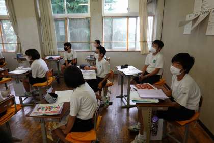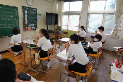それぞれの生徒が書いた、未来の予定を確認しています。
