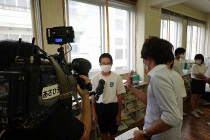 代表生徒がインタビューに答えています。