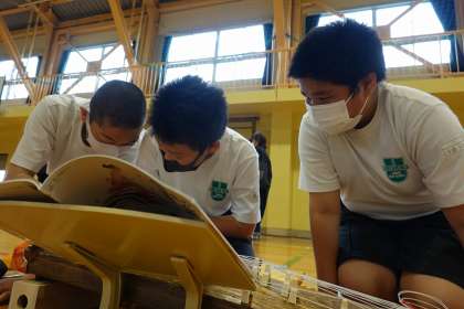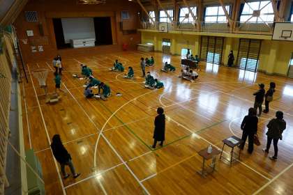 密を避けるため、各学級の実施日をずらすとともに、体育館で行っています。