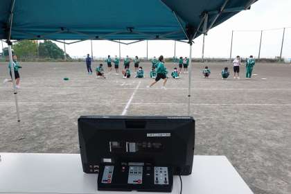 走っている生徒もタイムを確認できるようデジタルタイマーを設置しました。