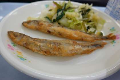 今日はカラフトシシャモ(カペリン)です。竜田揚げもおいしいです。