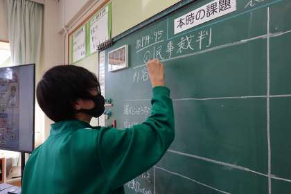 調べたことを黒板に書き入れます。