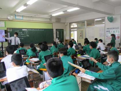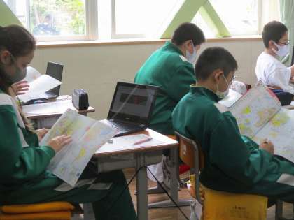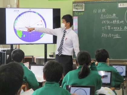 1年生が社会科の授業で、「世界各国の位置はどのようにして表すことができるか」という学習を行っていました。