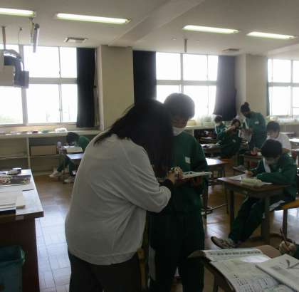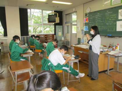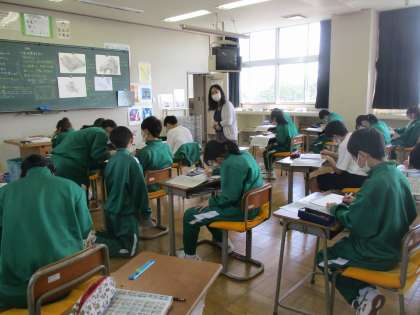 1年生が、美術でレタリング(文字のデザイン)の学習をしていました。