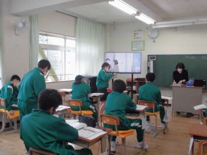 教科書の会話文を感情を込めたり、アナウンサーのように淡々と読んだりしています。