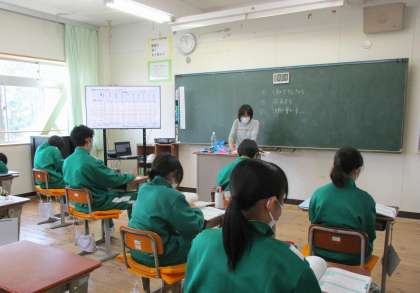 2年生が、家庭科で、「中学生に必要な栄養について」学習していました。