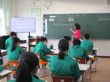 2年生が英語の学習の一環で過去進行形について学んでいました。